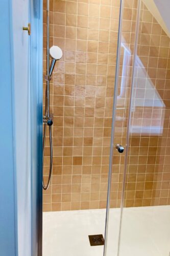 Un espace central partagé assure la distribution des pièces et dessert l’escalier. Le projet intègre également de nombreux rangements, la création de nouvelles ouvertures de toit et le remplacement des fenêtres afin d’apporter davantage de lumière et de confort. Deux accès indépendants ont été aménagés, permettant de louer chaque aile séparément en toute autonomie.