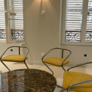 La réunion de deux petits appartements parisiens a nécessité une refonte intégrale de l’organisation intérieure. Dans ce contexte où chaque mètre carré — voire chaque centimètre carré — compte, l’objectif était d’optimiser les espaces, de créer de nouveaux rangements et d’entreprendre une rénovation complète incluant le remplacement des fenêtres, la révision de l’électricité, du chauffage, des sols et de la décoration.