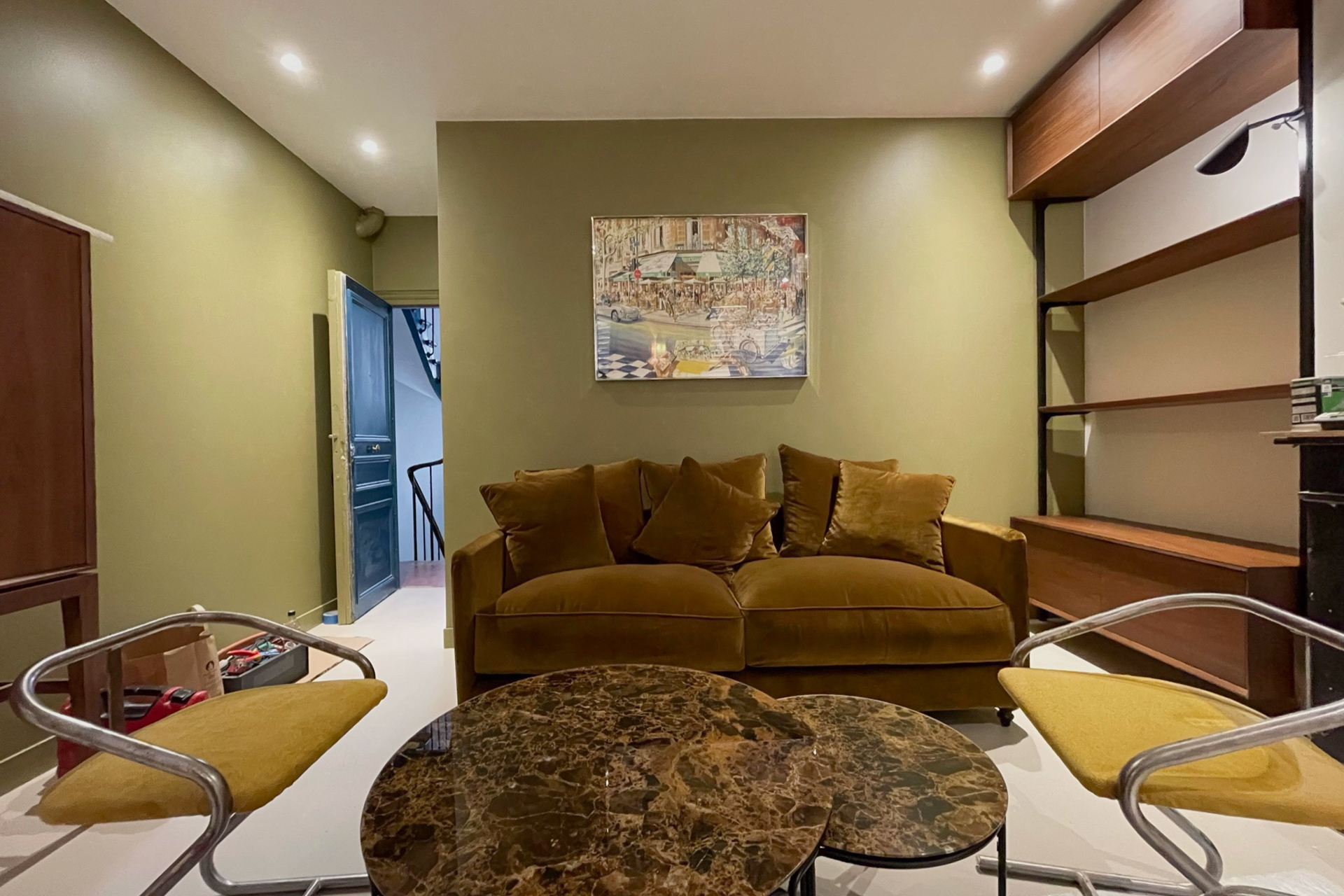 La réunion de deux petits appartements parisiens a nécessité une refonte intégrale de l’organisation intérieure. Dans ce contexte où chaque mètre carré — voire chaque centimètre carré — compte, l’objectif était d’optimiser les espaces, de créer de nouveaux rangements et d’entreprendre une rénovation complète incluant le remplacement des fenêtres, la révision de l’électricité, du chauffage, des sols et de la décoration.