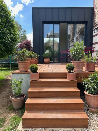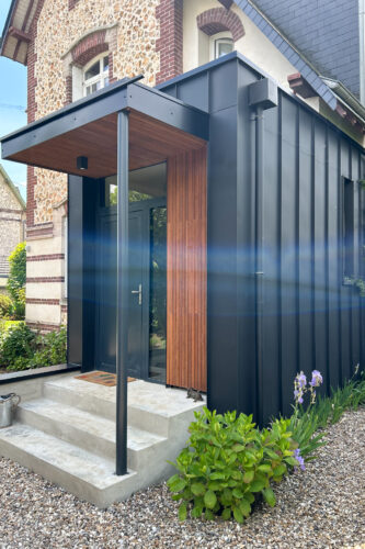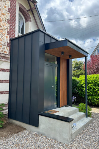 Enfin, une seconde extension vient résoudre la problématique d’une entrée peu fonctionnelle : elle crée un sas d’accueil abrité, intègre des rangements et améliore les circulations pour un usage plus pratique au quotidien.