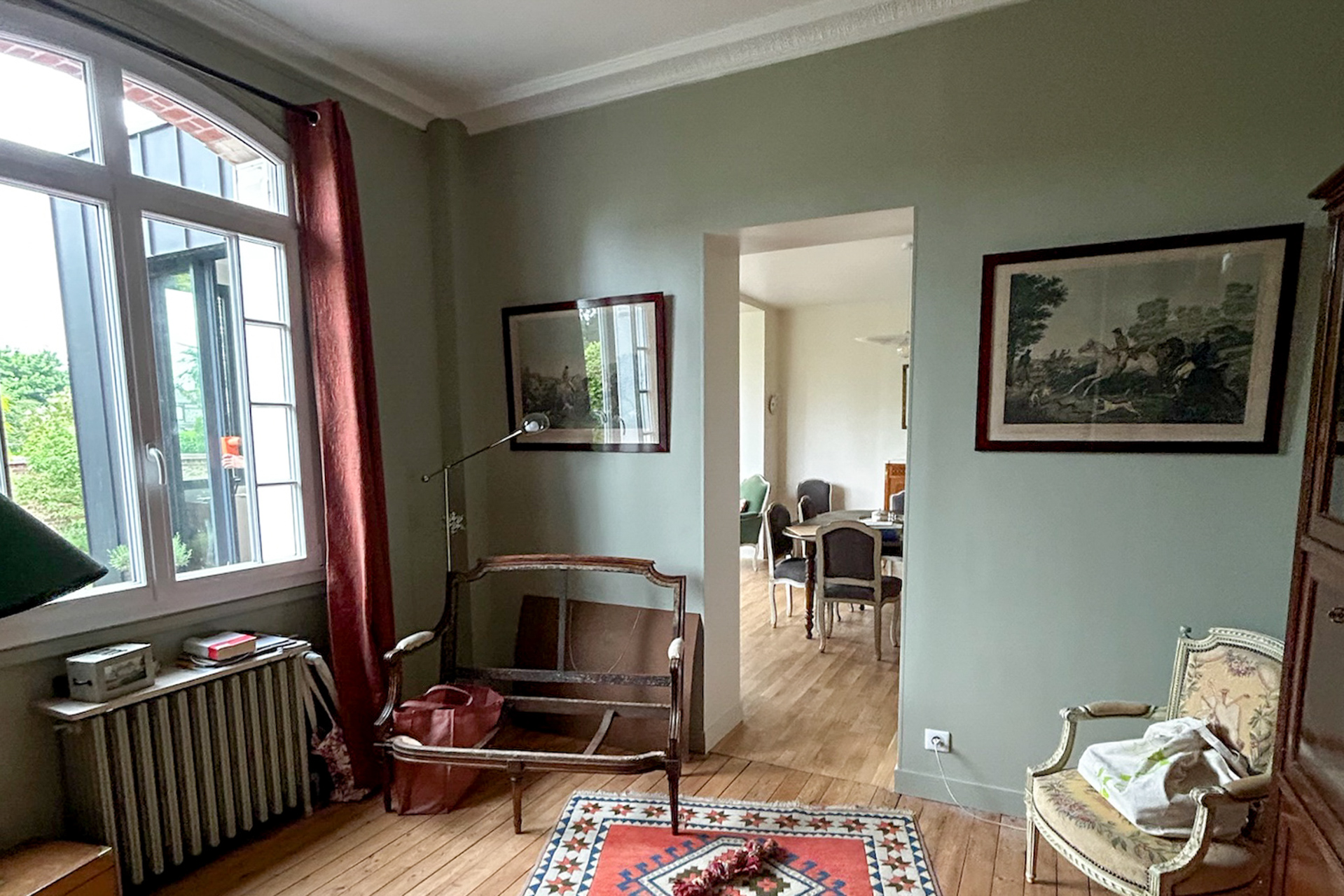 Cette maison de maître, caractérisée par ses pièces en enfilade, ne répondait plus entièrement aux modes de vie actuels. Les propriétaires souhaitaient des espaces plus fluides et plus adaptés à une famille en évolution, entre enfants grandissants et accueil occasionnel des petits-enfants.