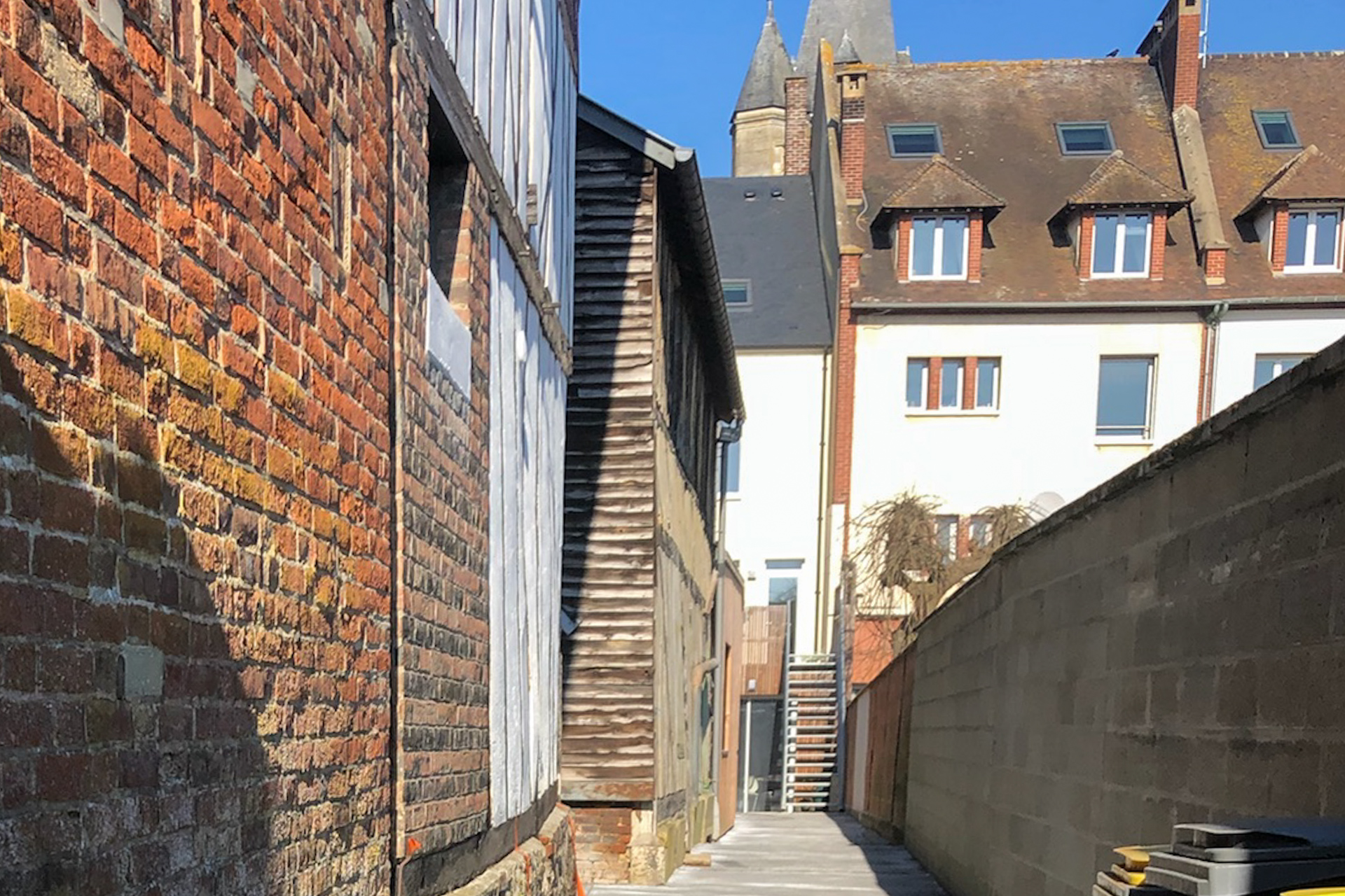 Le second bâtiment, trop vétuste, a été démoli pour laisser place à un nouveau logement tout en longueur, ouvert sur la cour et pensé pour offrir une qualité de vie généreuse malgré la finesse de la parcelle.