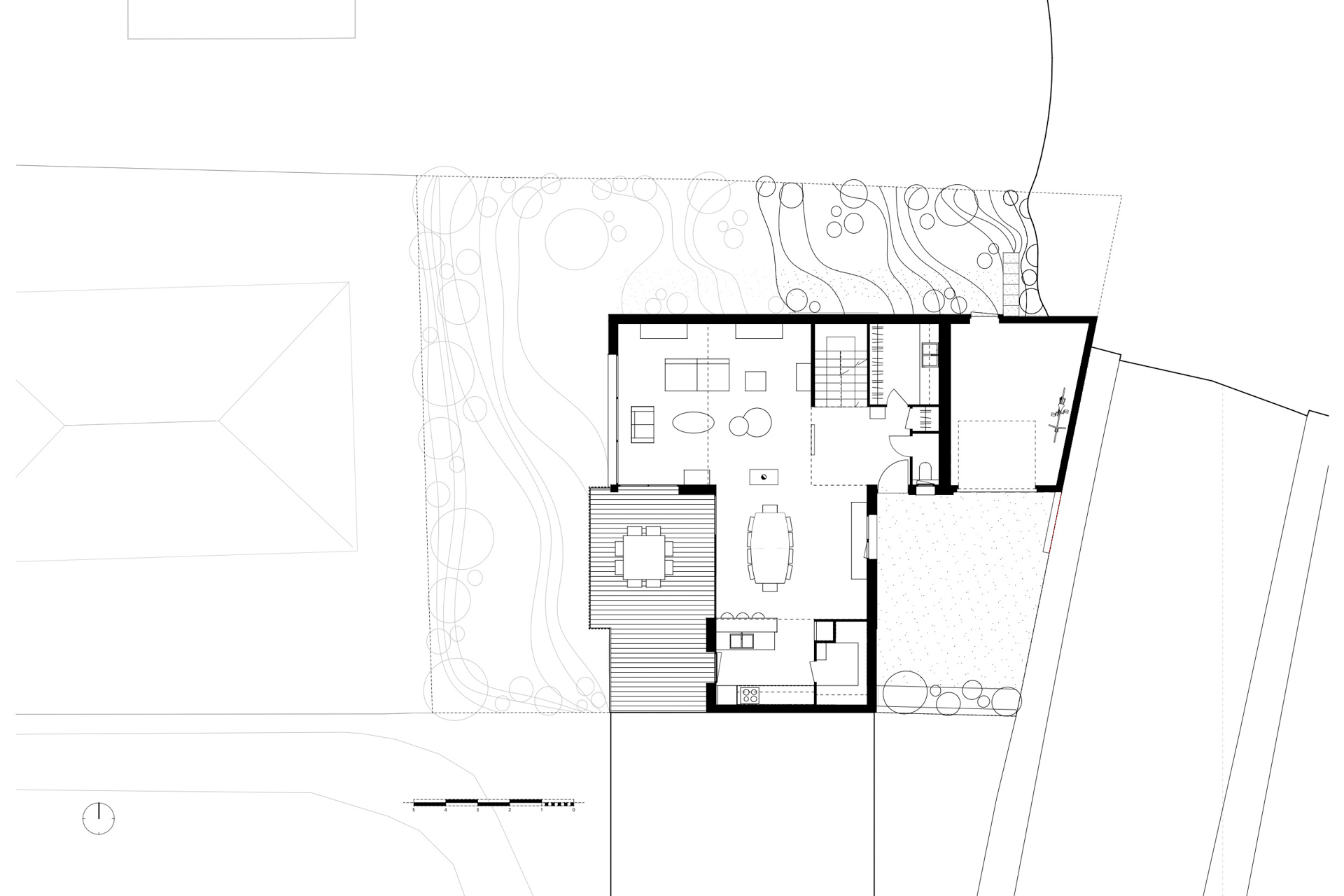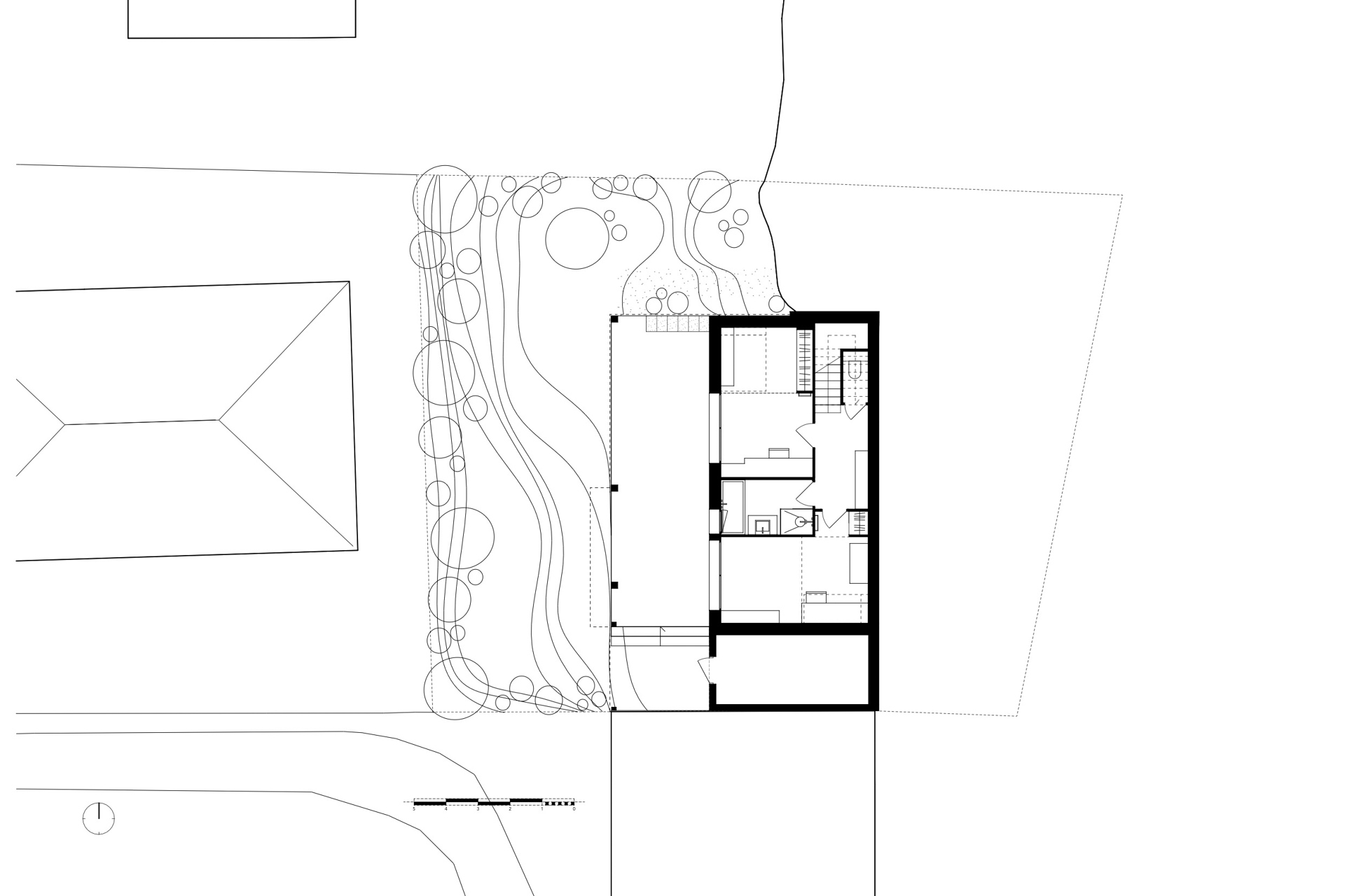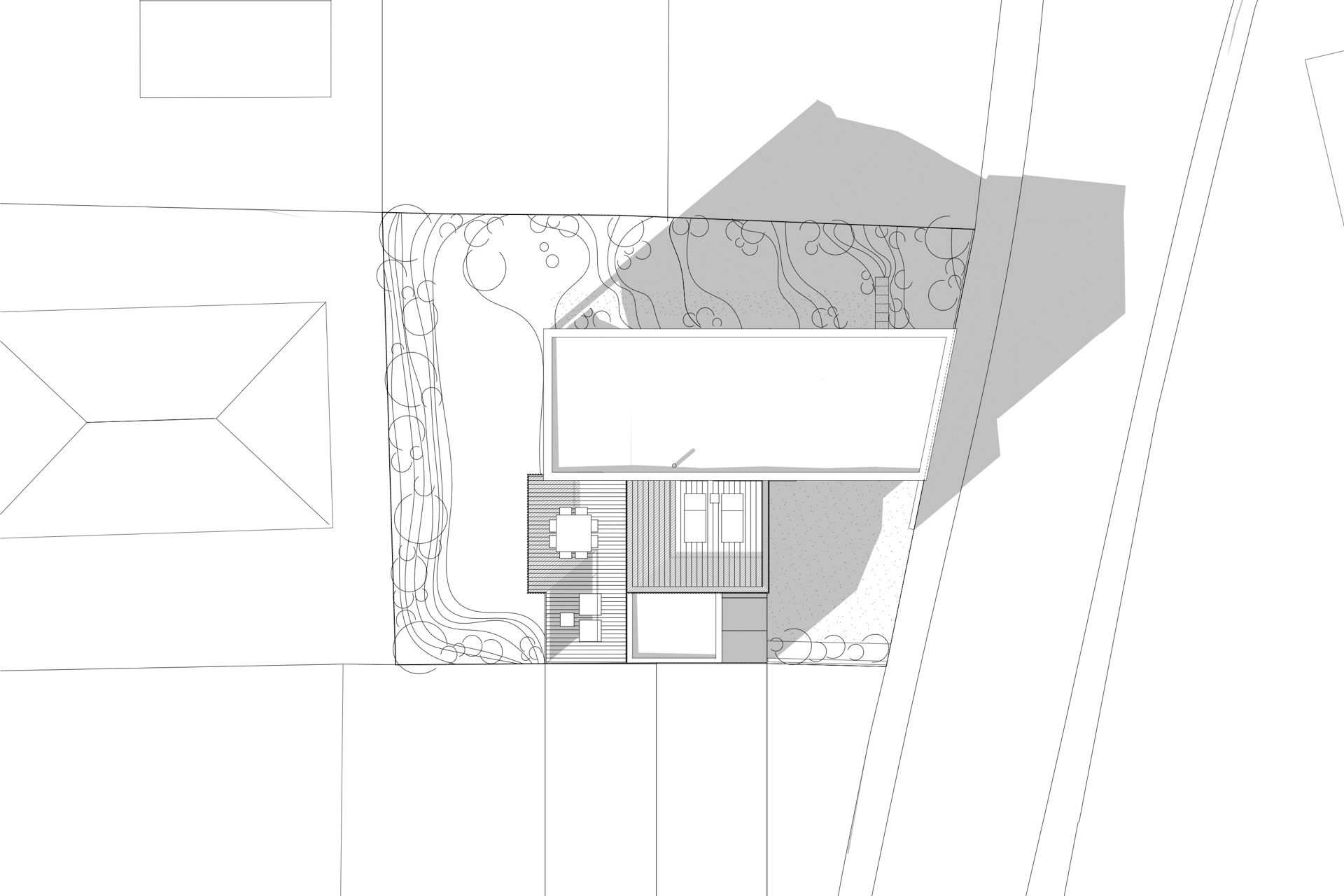 Pensée pour une famille de trois personnes et un bureau, la construction s’inscrit dans la pente afin de composer avec son environnement immédiat : la rue, la maison voisine et la topographie. Accolée au pignon existant, elle se structure autour des perspectives, de l’ensoleillement et de circulations fluides.