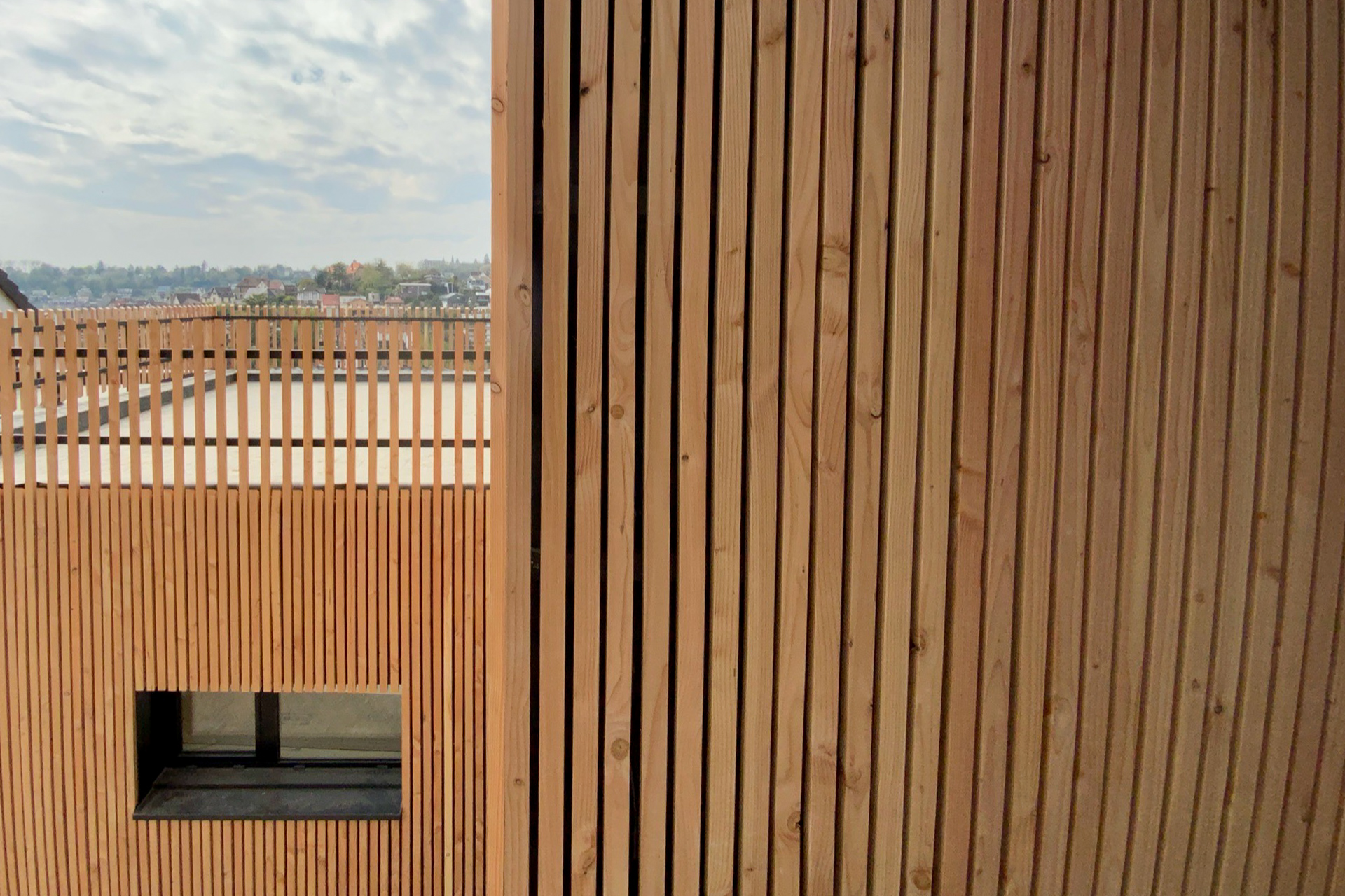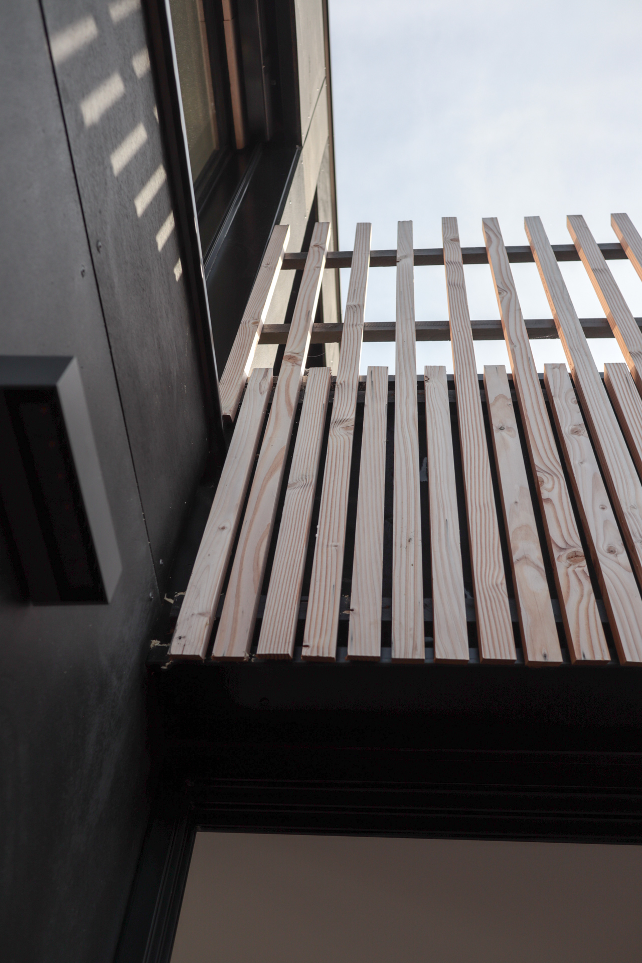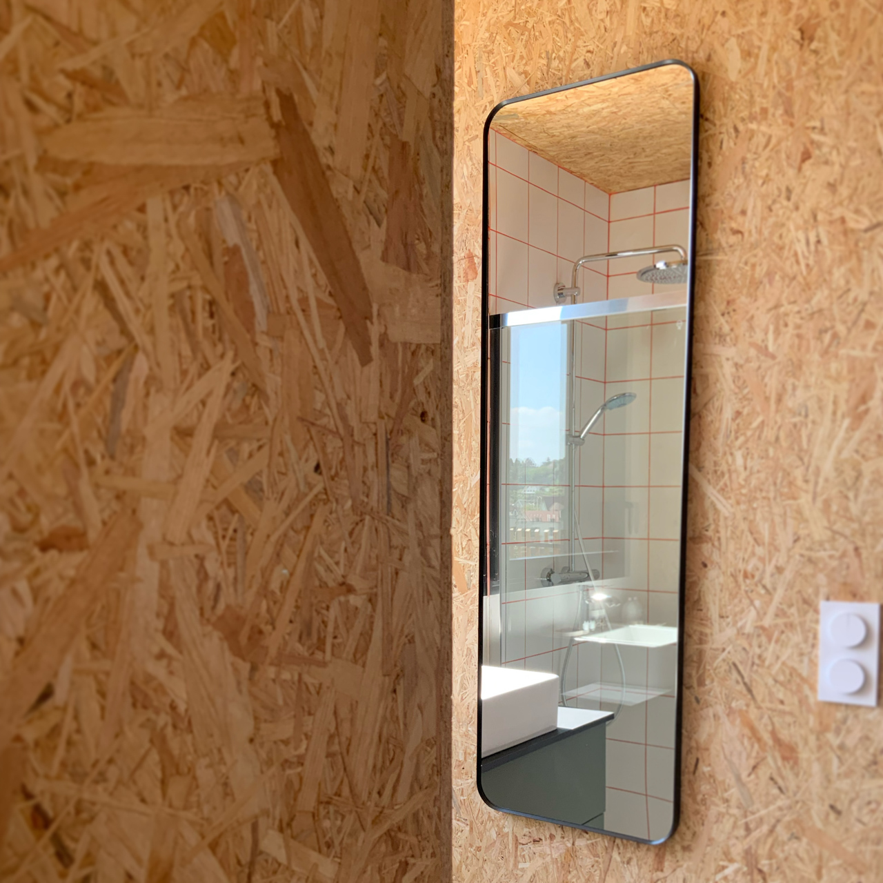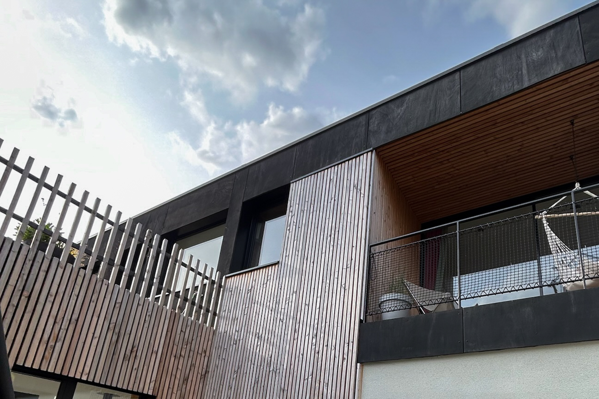 Pensée pour une famille de trois personnes et un bureau, la construction s’inscrit dans la pente afin de composer avec son environnement immédiat : la rue, la maison voisine et la topographie. Accolée au pignon existant, elle se structure autour des perspectives, de l’ensoleillement et de circulations fluides.